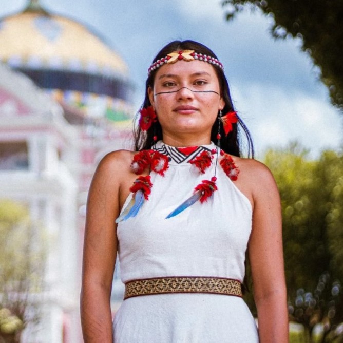 Indígena do povo Omágua Kambeba, Tainara nasceu e vive na Comunidade Três Unidos (AM), onde aprendeu desde cedo a respeitar e preservar a floresta e os saberes de seu povo. É integrante da Rede de Jovens Comunicadores da Rede de Mulheres Indígenas do Estado do Amazonas (Makira E’ta) e acredita no poder da comunicação como ferramenta de luta e resistência dos povos indígenas.